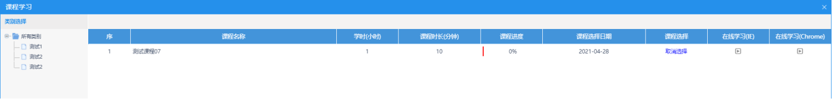 进入“选课管理”进行选课。根据提示选择所有继续教育课程。可点击“课件查看”和“查看”查看课件信息(需选够计划要求学时,学完才可进行能力测试)。