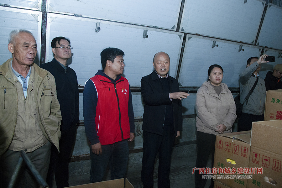 顶通 党组成员、副厅长刘哲(左四)调研北林村蛋鸡养殖基地