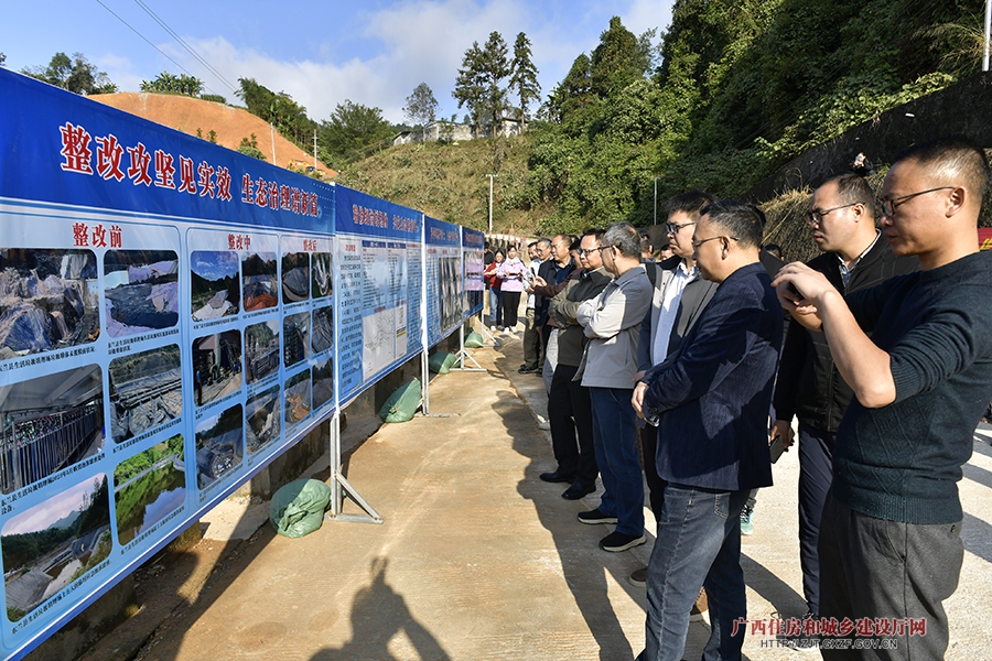 会议期间,与会代表前往都安瑶族自治县建筑垃圾消纳场和东兰县生活垃圾填埋场进行现场观摩学习。都安瑶族自治县建筑垃圾消纳场一期已建成投用,占地8.8万平方米,可消纳建筑垃圾52万立方米,切实解决都安瑶族自治县当前建筑垃圾处置难题。现场负责人详细介绍了该消纳场在规划选址、投资建设以及规范化运营管理方面的实践经验。在东兰县生活垃圾填埋场,与会代表重点考察了填埋场运营管理、渗滤液处理、环境风险防控以及实施综合治理工程等关键环节,交流互鉴填埋场环境风险隐患治理经验做法。