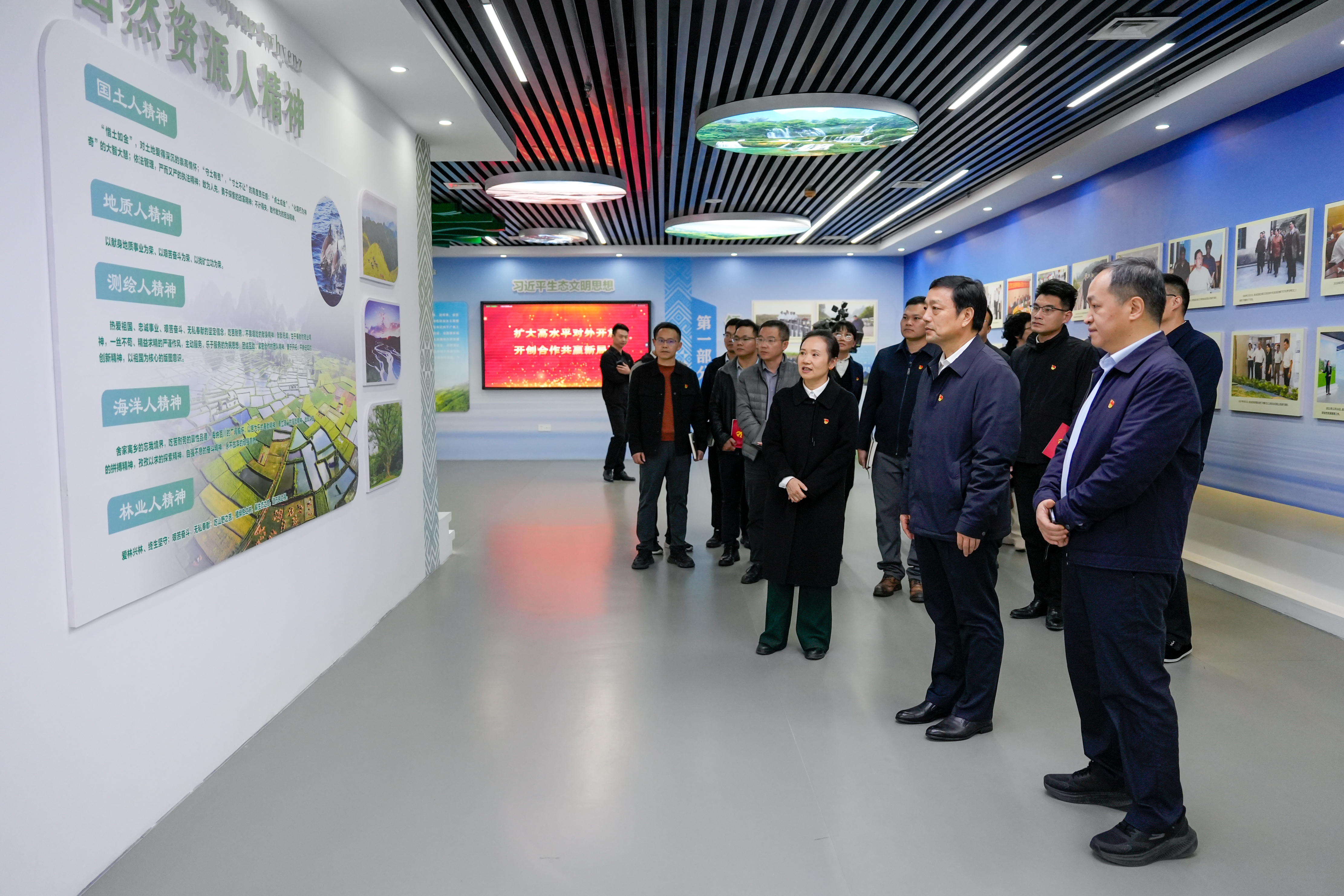 杨绿峰(前排右二)在广西自然资源教育馆调研