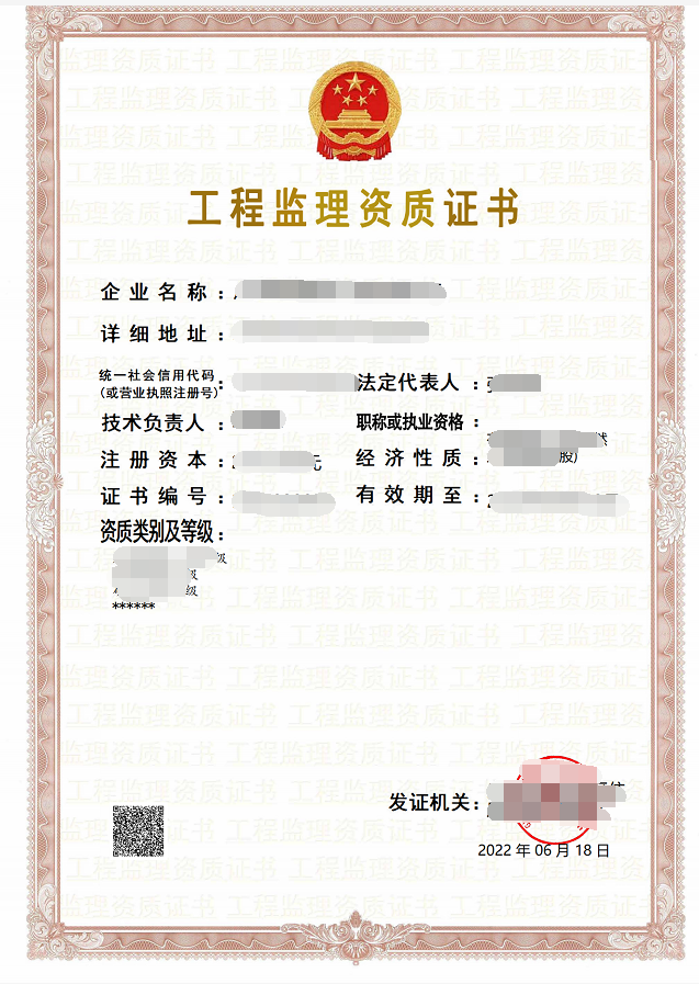 ⒉ 二维码验证:扫描工程监理企业资质电子证书左下方的二维码,即可查看工程监理企业资质证书详细信息。