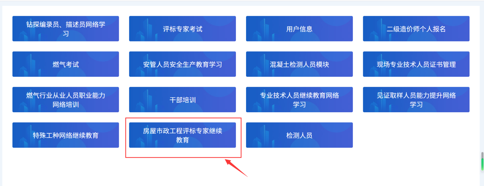 选择“房屋市政工程评标专家继续教育”模块。