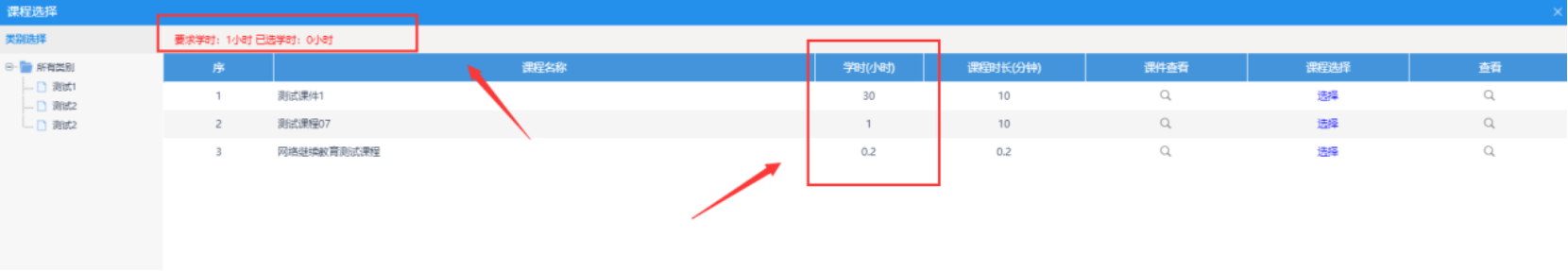 进入“选课管理”进行选课。根据提示选择所有继续教育课程。可点击“课件查看”和“查看”查看课件信息(需选够计划要求学时,学完才可进行能力测试)。